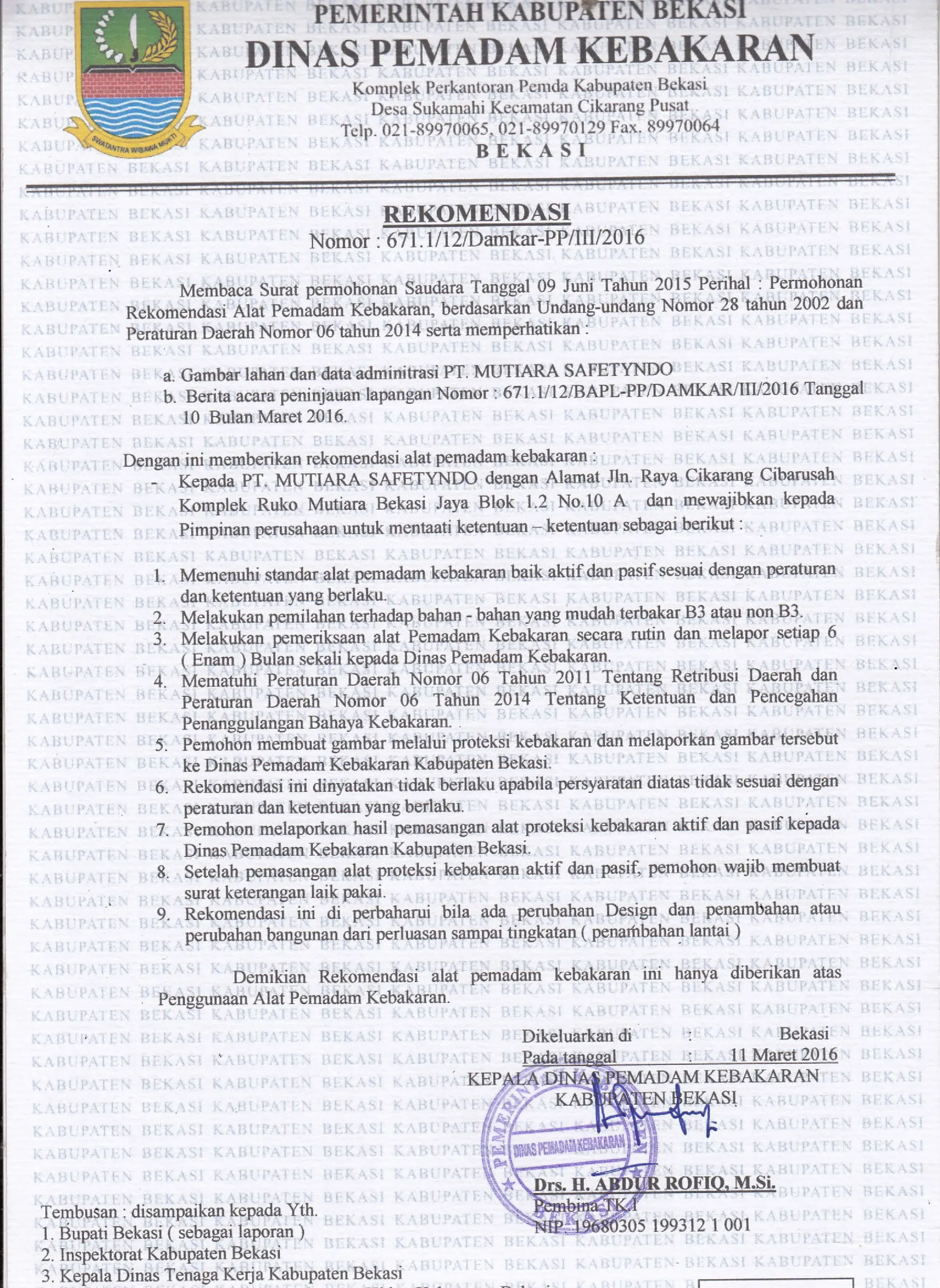 LEGALITAS, SERTIFIKAT & REKOMENDASI DAMKAR